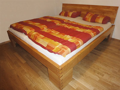 ganzer Bretter aus aufgesägten Baumstämmen sowie das abschließende Ölen des Werkstückes bringt die Maserung der verschiedenen Holzarten zur Geltung.